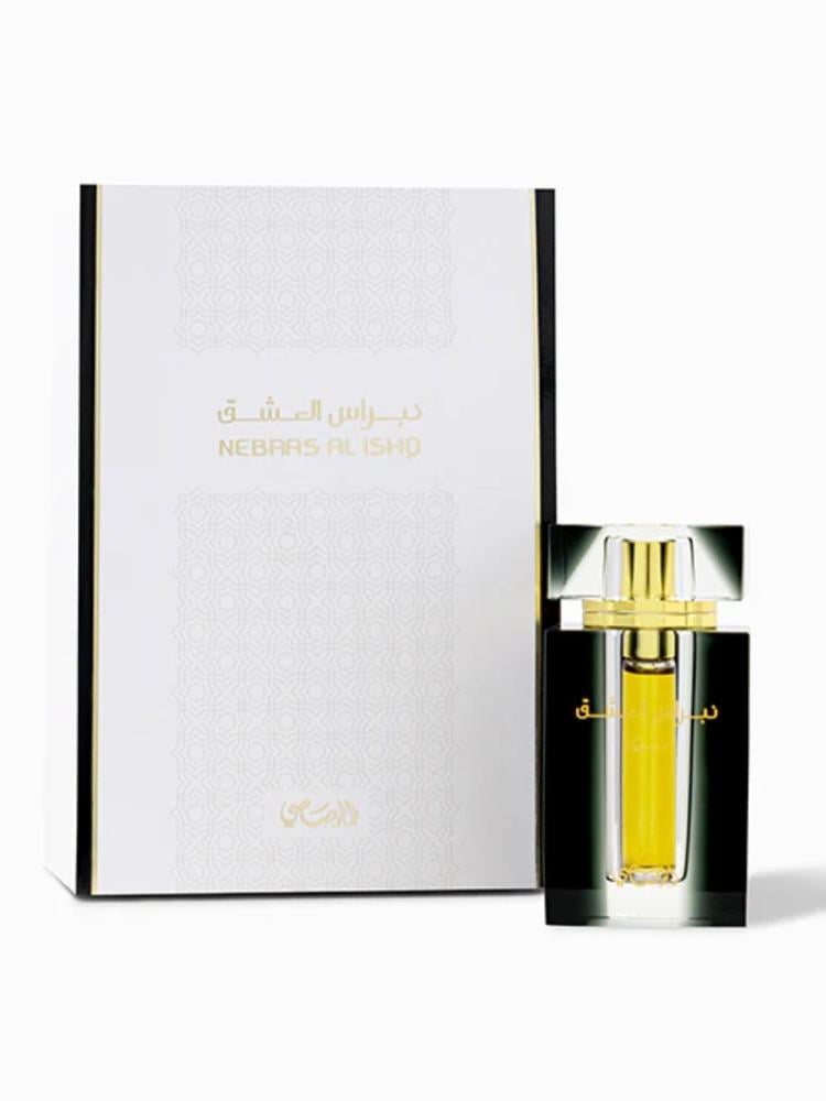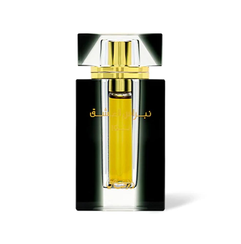 Nebras Al Ishq is a unisex line of three fragrance oils - Wahaj, Shorouk and Noor. An ode to modern love, the variants interpret different facets of love, each hugely unique but also complementary to one another. A taste for additive gourmand notes radiating with the opulence of precious Oudh underlines this series. Intensely captivating and enthralling-Nebras Al Ishq - Noor blends enigmatic dark nuances of rose and oud with spicy cardamom in perfect harmony. The fresh, top notes of lemon, orange and green accord lead to a harmonious heart of intoxicating rose and oriental Jasmine, while a touch of balsamic amber and patchouli fondly sweetens the strong oudhy base.